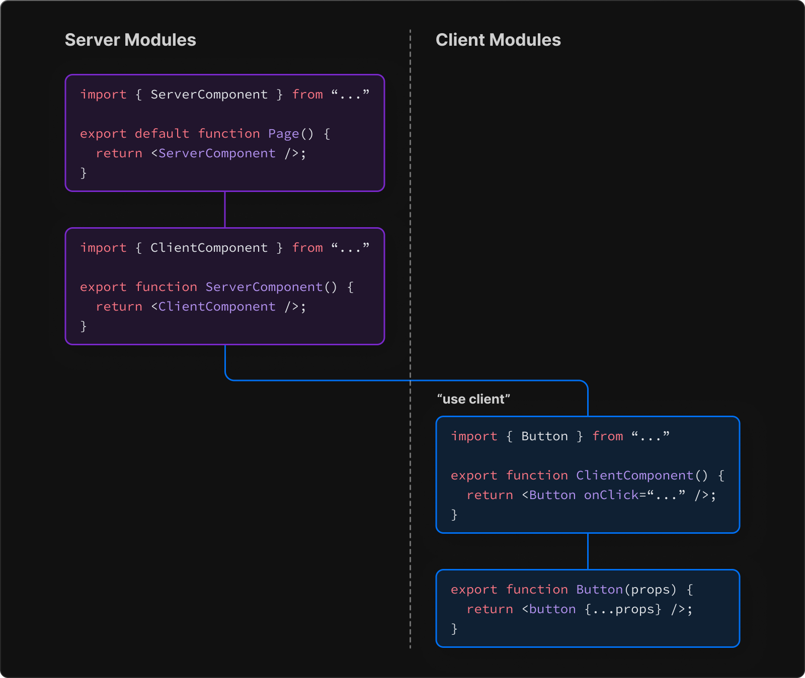 문서에 따르면, 서버 컴포넌트와 클라이언트 컴포넌트를 구분지을 수 있는 가이드가 잘 정의되어 있다.