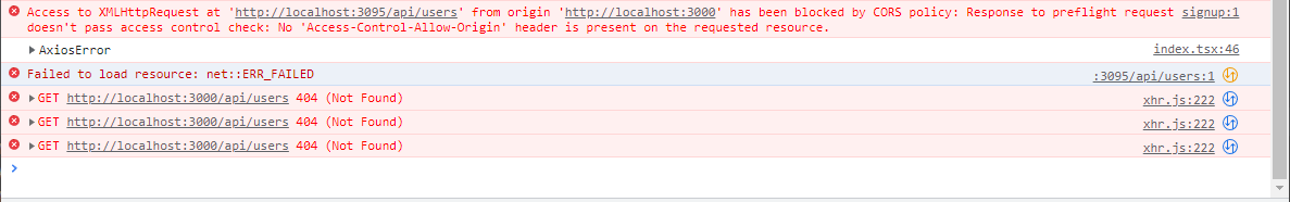 만약 오픈된 API를 사용하는게 아니라 로컬 서버를 통해 작업이 진행된다면 백엔드 개발자께 해당 주소(보통 포트)를 열어달라고 요청하면 된다. 다시 백엔드를 받고 나서 실행시킨다면 OK!