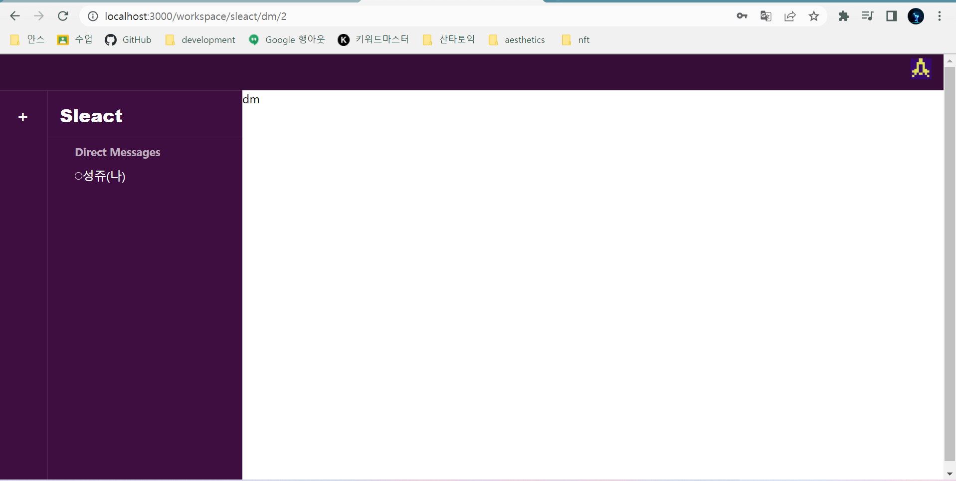 위의 Slack구조는 지금 url이 channel인지, dm인지에 따라 우측에 보여주는 컴포넌트를 다르게 해준다.