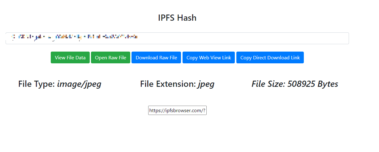 저 IPFS Hash에 아까 우리가 만든 이미지의 CID를 넣어보고 View File Data 버튼을 눌러봅시다!