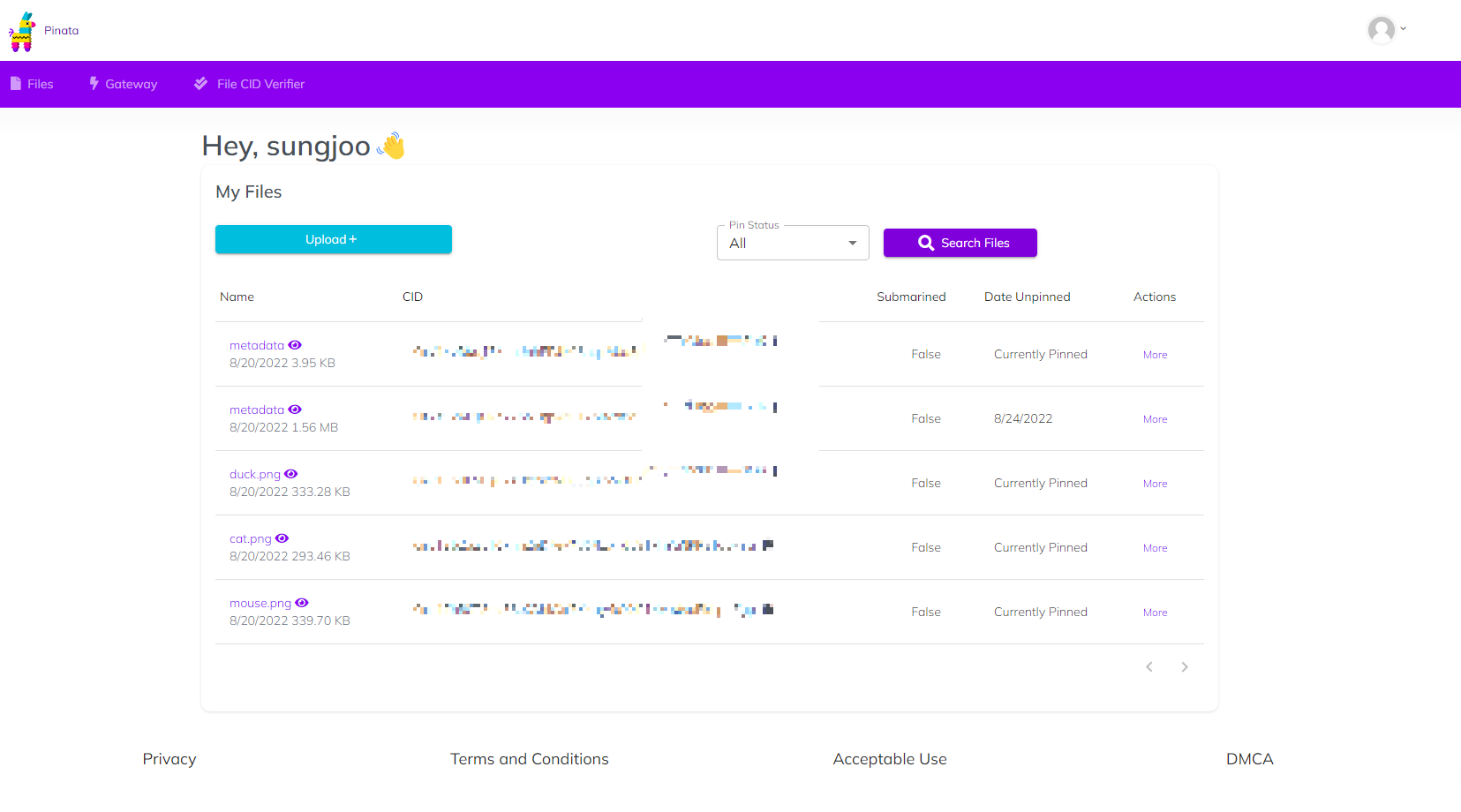 자! 다시 pinata를 켜고 이 json파일을 넣는다면 일단 NFT를 민팅하기 위한 모든 준비는 끝입니다.