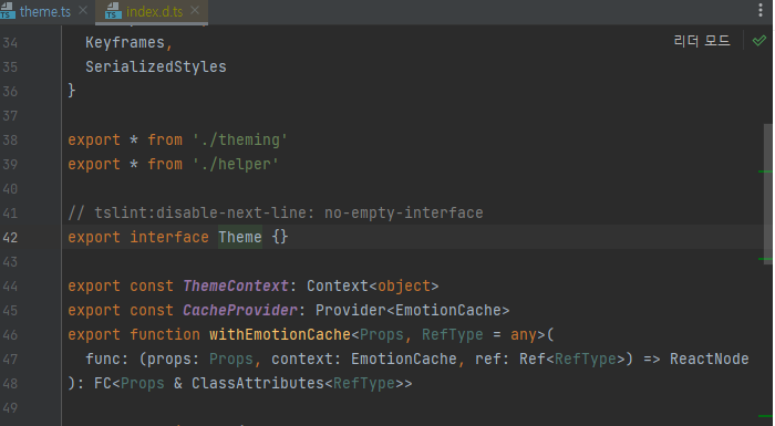 이 원인 중 하나가 typescript에서 저희가 정의한 Theme의 type을 해독하지 못해서라고 합니다.