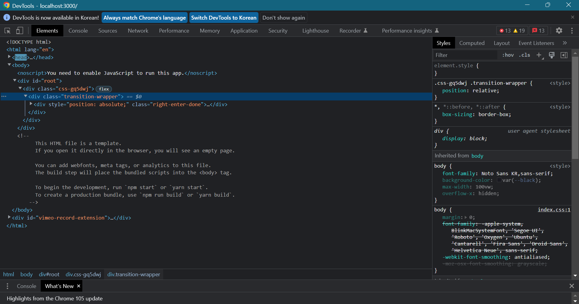 먼저, 원활한 Transition을 위해서 react-transition-group 라이브러리를 설치해준다.