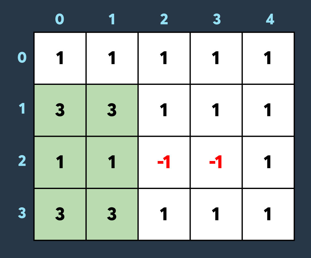 const partialSums = Array.from({ length: board.length + 1 }, () => Array.from({ length: board[0].length + 1 }, () => 0));