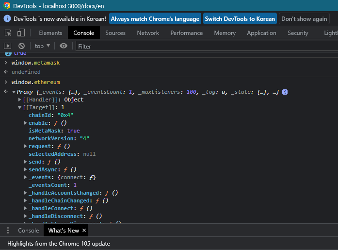 이 객체는 메타마스크를 설치한 사람만 볼 수 있는 정말 신기한 객체이다.