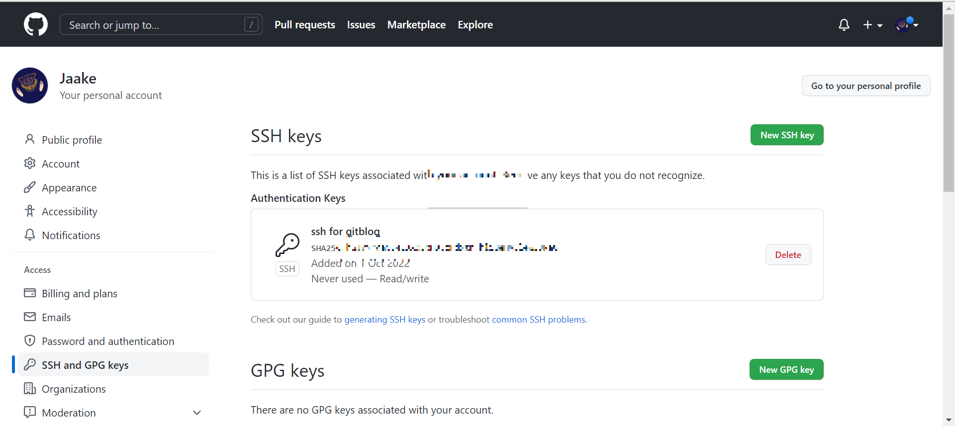 github page는 일반적으로 static한 화면을 보여주기 때문에 일반적으로는 ssh가 딱히 필요가 없다.