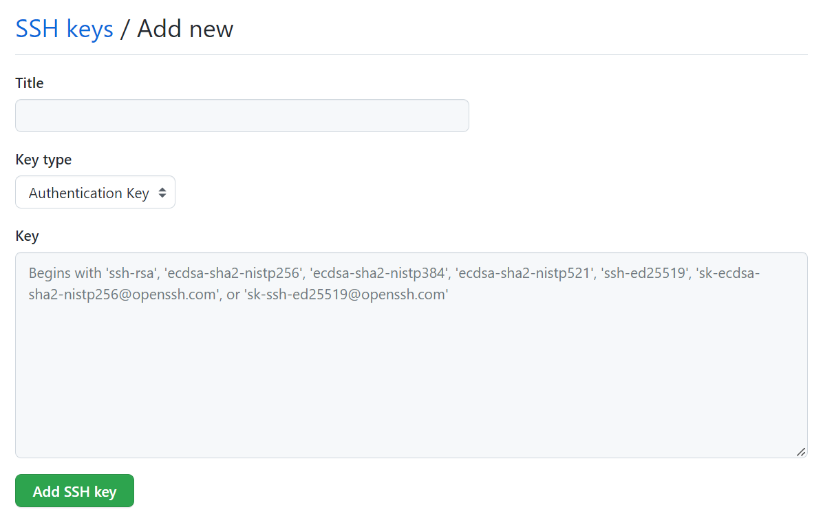 [New SSH key] 버튼을 눌러서 입력을 해줍시다.
